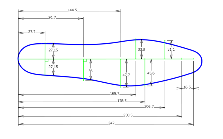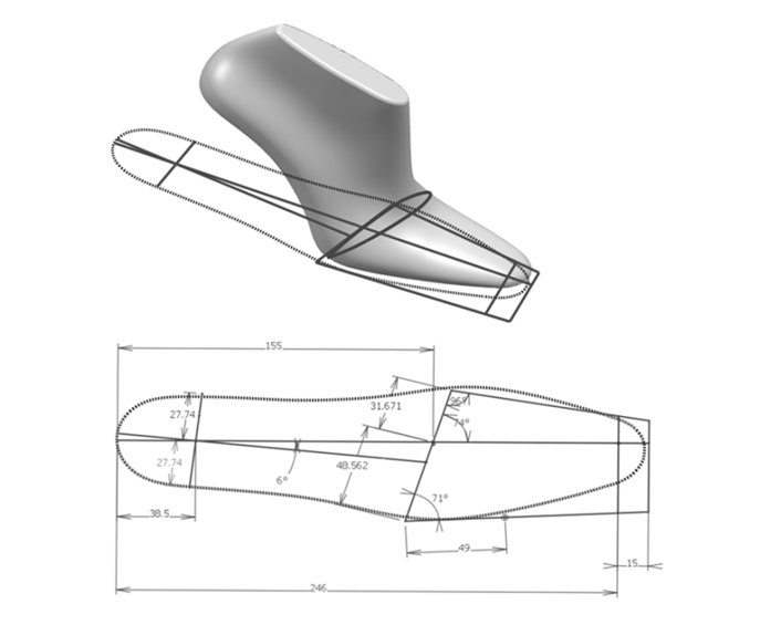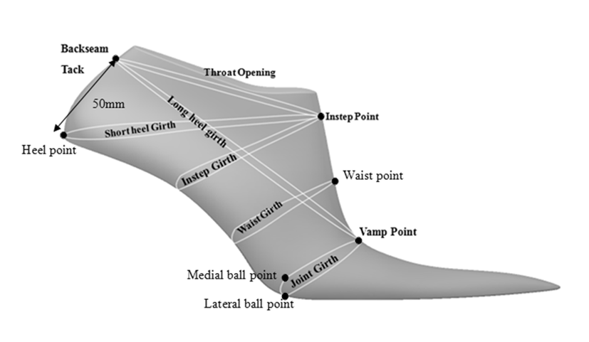 Shoe last dimensions used for AKA64/WMS (girth = 211).Note: the size 6B in Adrian (1991) has ball girth = 204.8, but current shoe-last factories refer to size 6B which has a ball girth = 211. This is equivalent to size 6C in Adrian (1991)