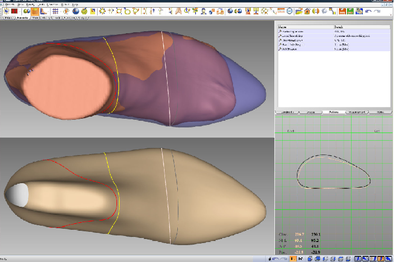 CAD design screen showing custom expansion of shoe last in the area of the bunion