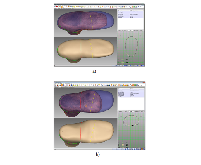 a) Right foot and last, plantar aspect b) left foot and last, plantar aspect