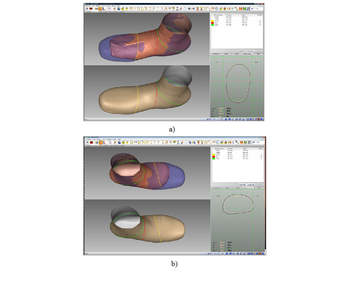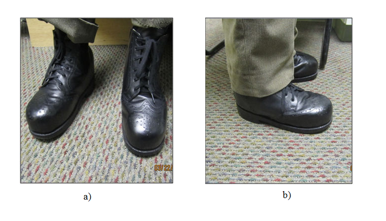 a) Right foot and last, dorsal aspect b) Left foot and last, dorsal aspect
