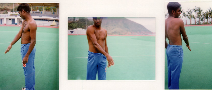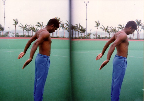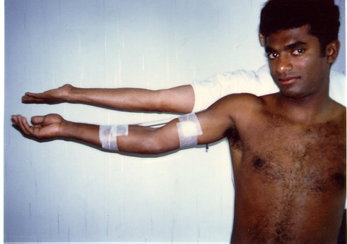 A different view. Arms not fully straight! Pictures taken using a 3-D camera. Try focussing you left eye on left side of picture and right eye on right side of picture. If you do it properly, you should see a 3-D image.
