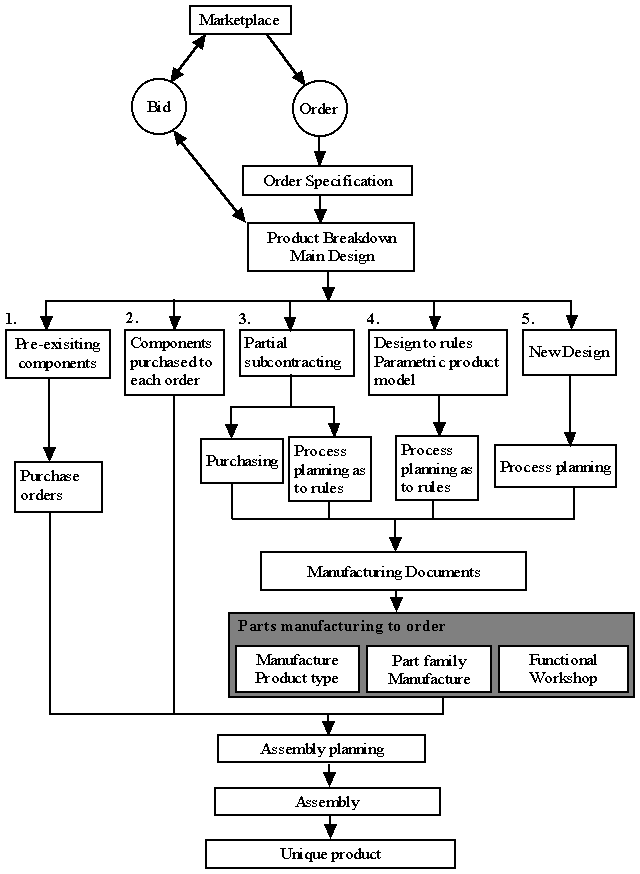 The figure is universal in application. Research is currently being done on the best methods to achieve customer order controlled manufacturing. However, there are a few guidelines that have emerged from a study of successful manufacturers who are operating close to this objective. Among the technologies that appear most promising are the following: