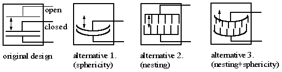 The TIPS system will question the designer till it discovers that in fact the contact resistance is inversely proportional to surface area (not volume), and thereafter suggest solutions for the contacts which can have small volume but large surface area. The figure below shows some suggestions.