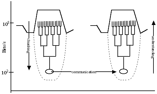 How do we communicate large, complex amounts of information between people ? We must either spend a large amount of time, transferring the information at a low rate, OR, we must first organize the information into larger chunks, and communicate using these chunks instead of low level bits. We shall call these chunks of information Bits (with upper case B). The following figure shows how information is transferred between individuals using this type of information organization.