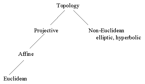 Fortunately, for objects in the Euclidean geometry (the 3D space denoting our familiar Euclidean geometry is denoted E3), the intuitive feel for these concepts is usually fine.
