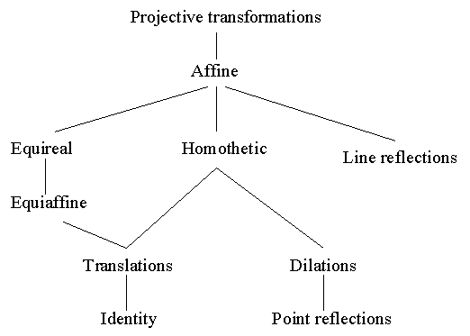 The study of geometry is mostly concerned with the study of properties that remain invariant under a set of transformations. Mathematically, transformations may be classified as follows.