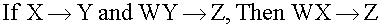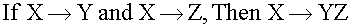 A1, A2, and A3 form a complete set of inference rules for FDs. Using these, we can also prove some additional useful inference rules: