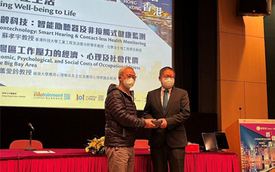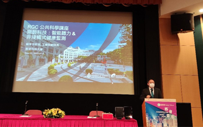 Prof. Richard So was invited by the Research Grants Council (RGC) to give the RGC Public Lecture on 17 Dec 2022 to share his research findings and knowledge in relation to gerontechnology. Advances in medicine have extended the life expectancy of humans to beyond 80 years. As humans age, our hearing and health degenerate, resulting in poorer quality of life. Professor Richard So introduced how AI technology would help to develop smart hearing and contactless health monitoring solutions. With these intelligence technologies, senior citizens can continuously communicate effortlessly with their families and friends, enjoy the music they love and have their health status such as blood pressure and heart rates checked through mobile phones. The research was partially funded by RGC, UGC and ITC via GRF, HKPFS and ITF grants.